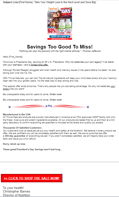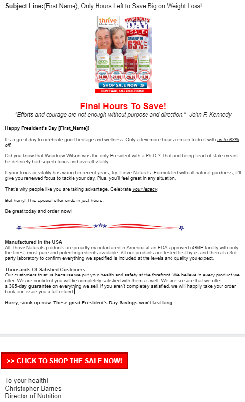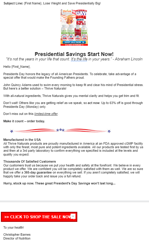 Presidents Day Promo Email 3
